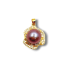 A stunning pendant featuring a rosy-hued pearl nestled at the heart of a blooming floral-inspired gold setting, accented with shimmering zircon. Feminine and graceful, this piece exudes timeless elegance with a romantic twist.