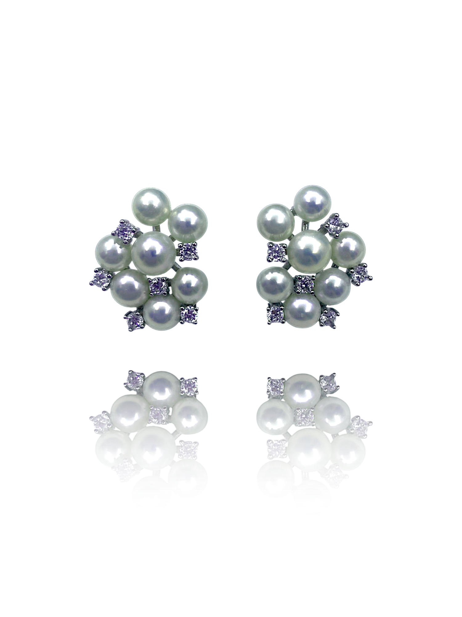 These elegant earrings feature premium Akoya pearls arranged in a radiant floral cluster, interspersed with brilliant white zircon stones. The refined design highlights the natural luster of the Akoya pearls, offering a timeless look that blends classic sophistication with modern sparkle—perfect for special occasions or elevated daily wear.